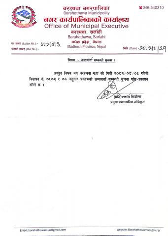 बोलपत्र स्वीकृत गर्ने आशयको सुचना !!