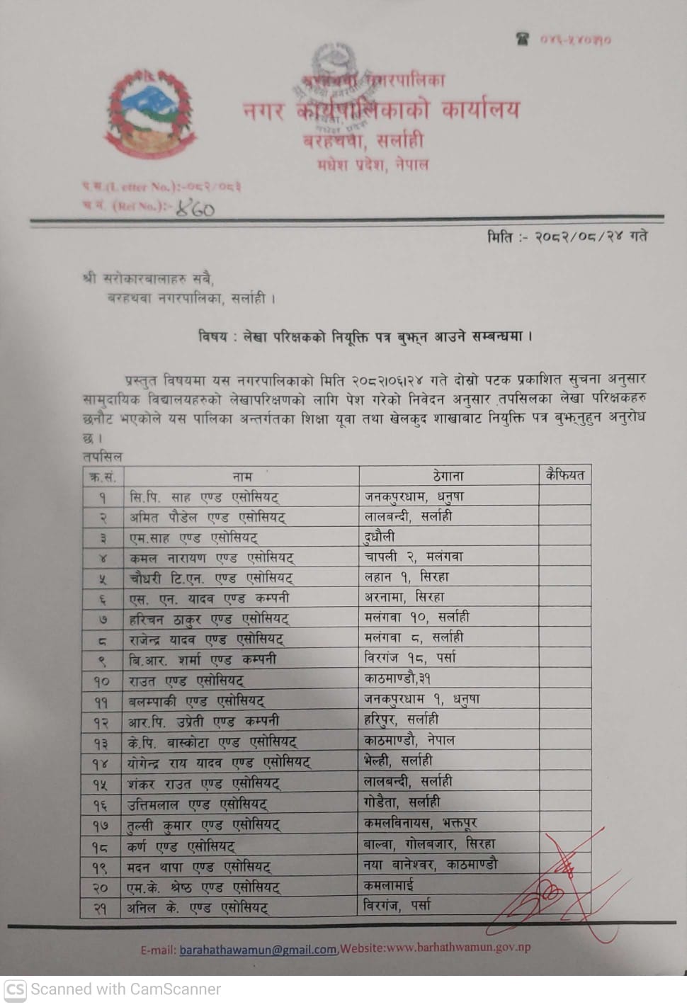 लेखा परिक्षकको नियुक्त्ति पत्र बुझन आउने सम्बन्धी सुचना !!