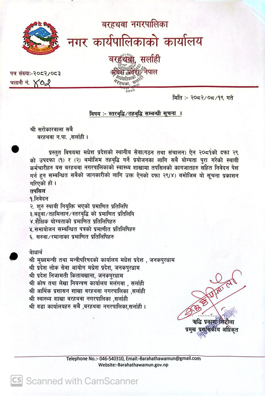 » स्तरवृद्धि / तहवृद्धि सम्बन्धी सुचना !!