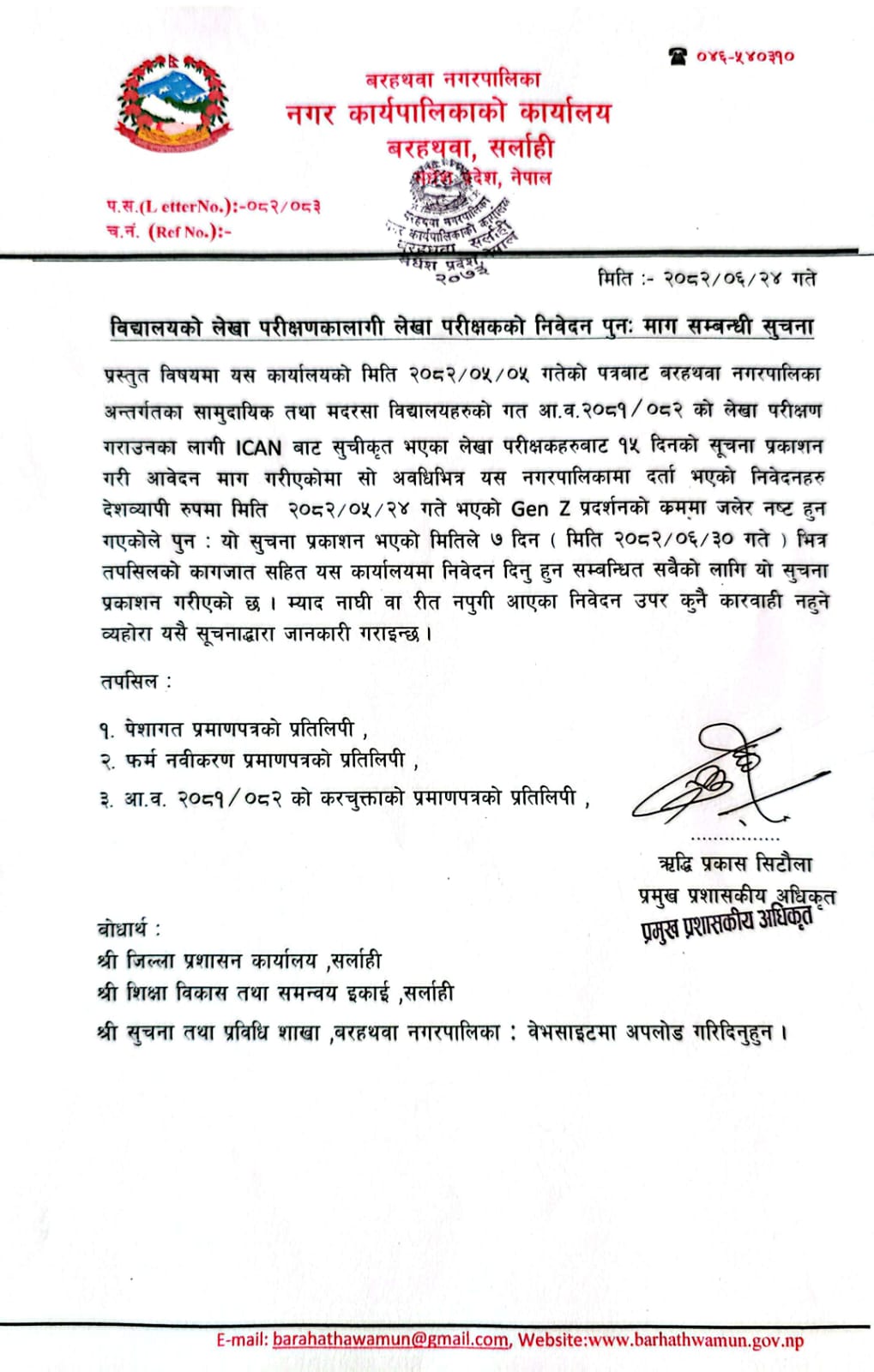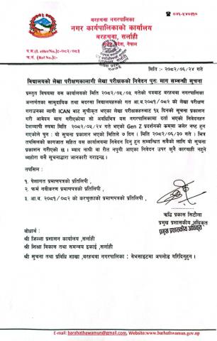 विद्यालयको लेखा परीक्षणका लागि लेखा परिक्षकको निवेदन पुन :माग सम्बन्धी सूचना !!