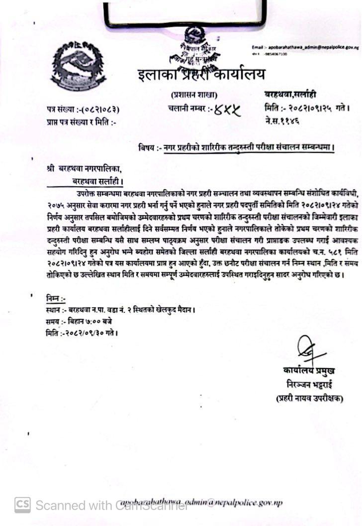 नगर प्रहरीको शारीरिक तन्दुरुस्ती परीक्षा संचालन सम्बन्धमा !!