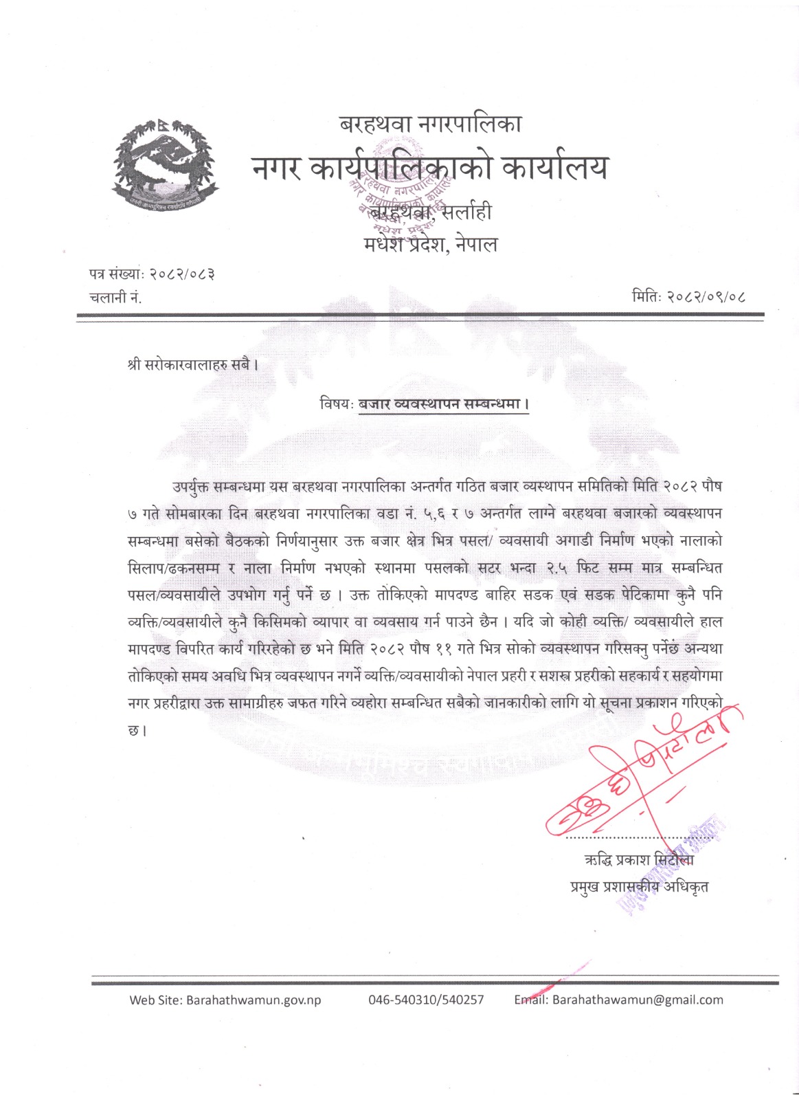 बजार व्यवस्थापन सम्बन्धमा अत्यन्त जरुरी सुचना !!